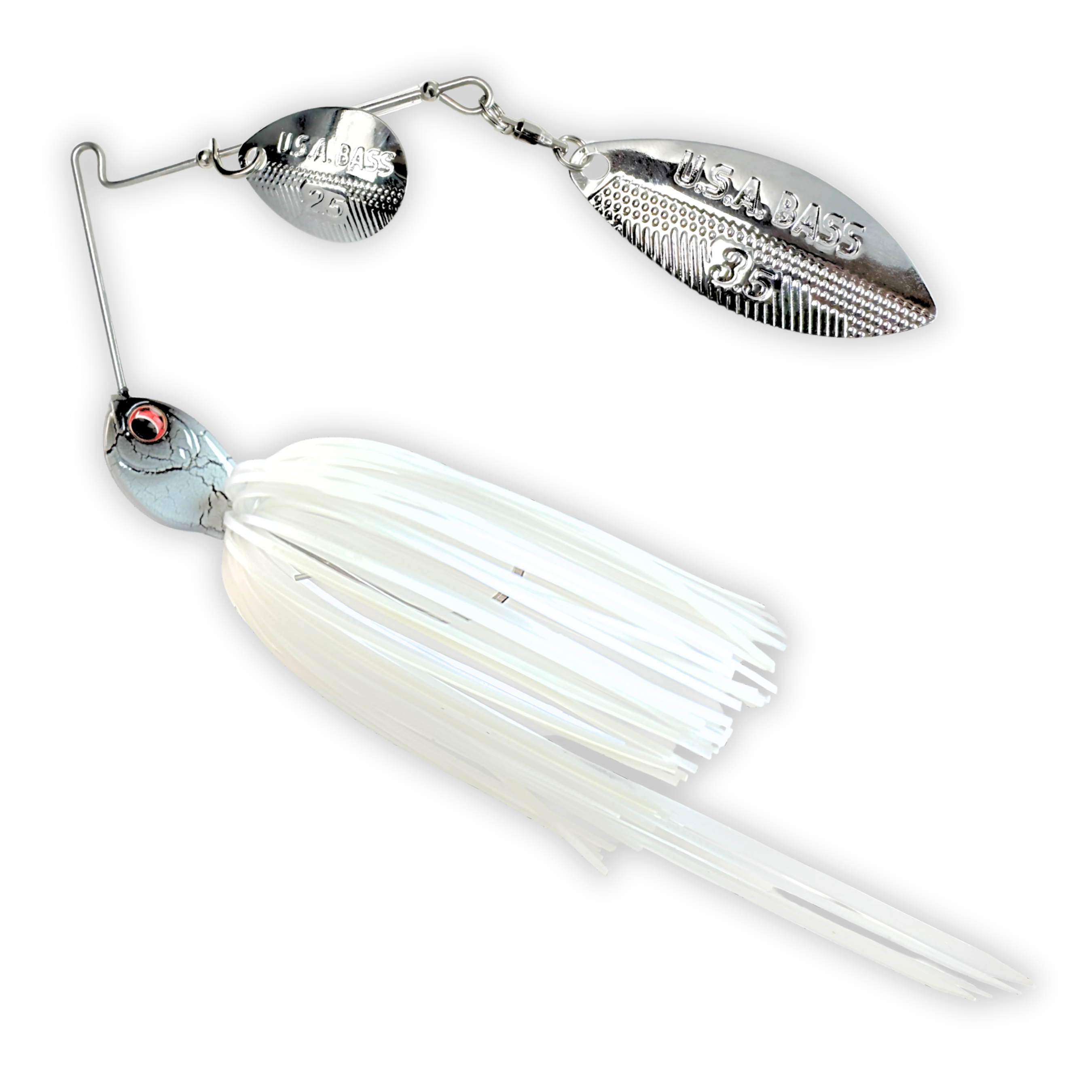 The USA Bass Tackle Apache spinnerbait is a high-performance lure designed to outfish any other on the market. With its innovative drop head design and precisely balanced body, this spinnerbait runs true no matter the cover or structure. The heavy-duty hook and custom blades deliver enticing flash and vibration to draw strikes, while intricate color options allow anglers to match various forage patterns. Whether barreling through rocky areas or traversing wood, the Apache excels at navigating tough cover. Anglers can rely on its proven fish-catching power for consistent action even in tough fishing conditions. With quality construction and cutting-edge features that produce for anglers day after day, the Apache sets the standard for hard-working spinnerbaits. Hand built, hand tied and hand painted right here in central California LFG!