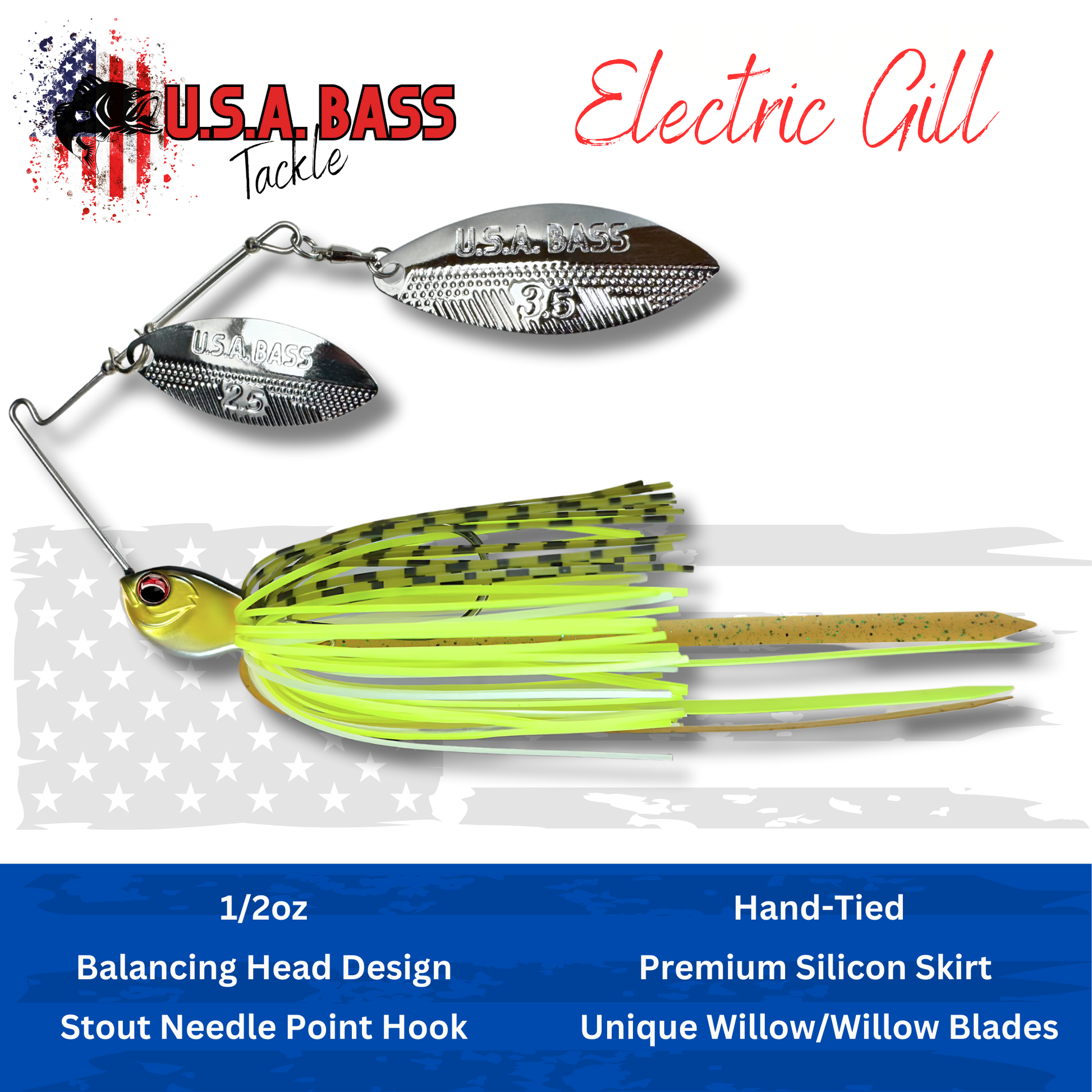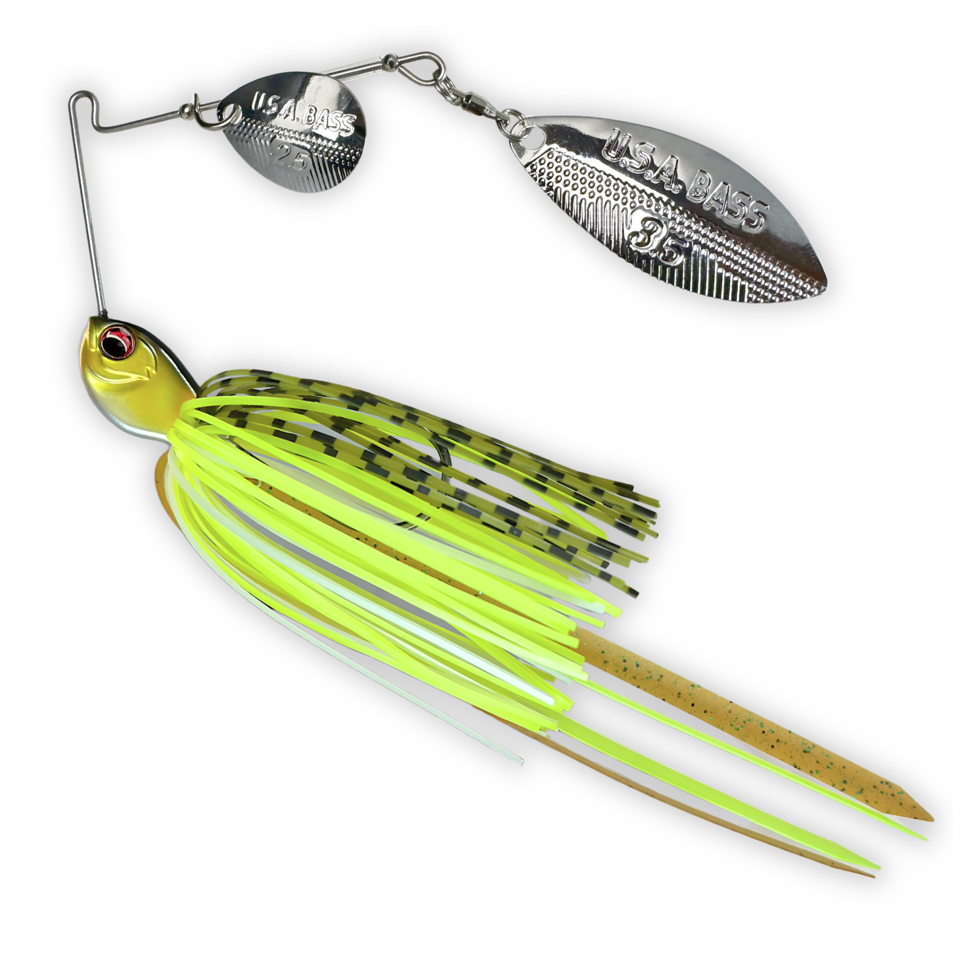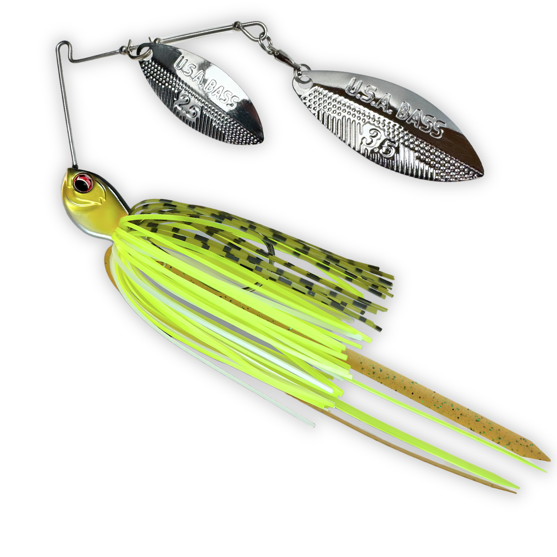 The USA Bass Tackle Apache spinnerbait is a high-performance lure designed to outfish any other on the market. With its innovative drop head design and precisely balanced body, this spinnerbait runs true no matter the cover or structure. The heavy-duty hook and custom blades deliver enticing flash and vibration to draw strikes, while intricate color options allow anglers to match various forage patterns. Whether barreling through rocky areas or traversing wood, the Apache excels at navigating tough cover. Anglers can rely on its proven fish-catching power for consistent action even in tough fishing conditions. With quality construction and cutting-edge features that produce for anglers day after day, the Apache sets the standard for hard-working spinnerbaits.