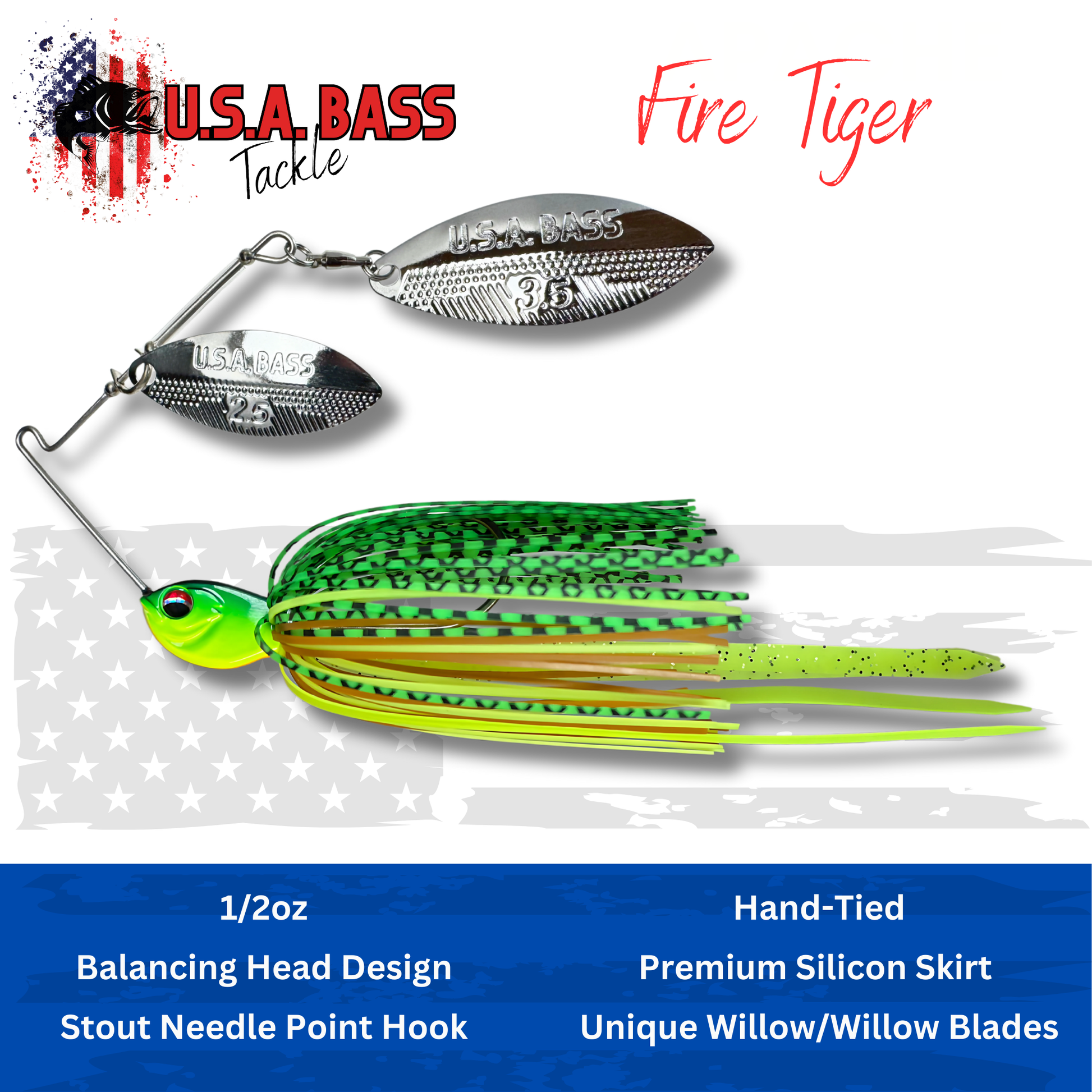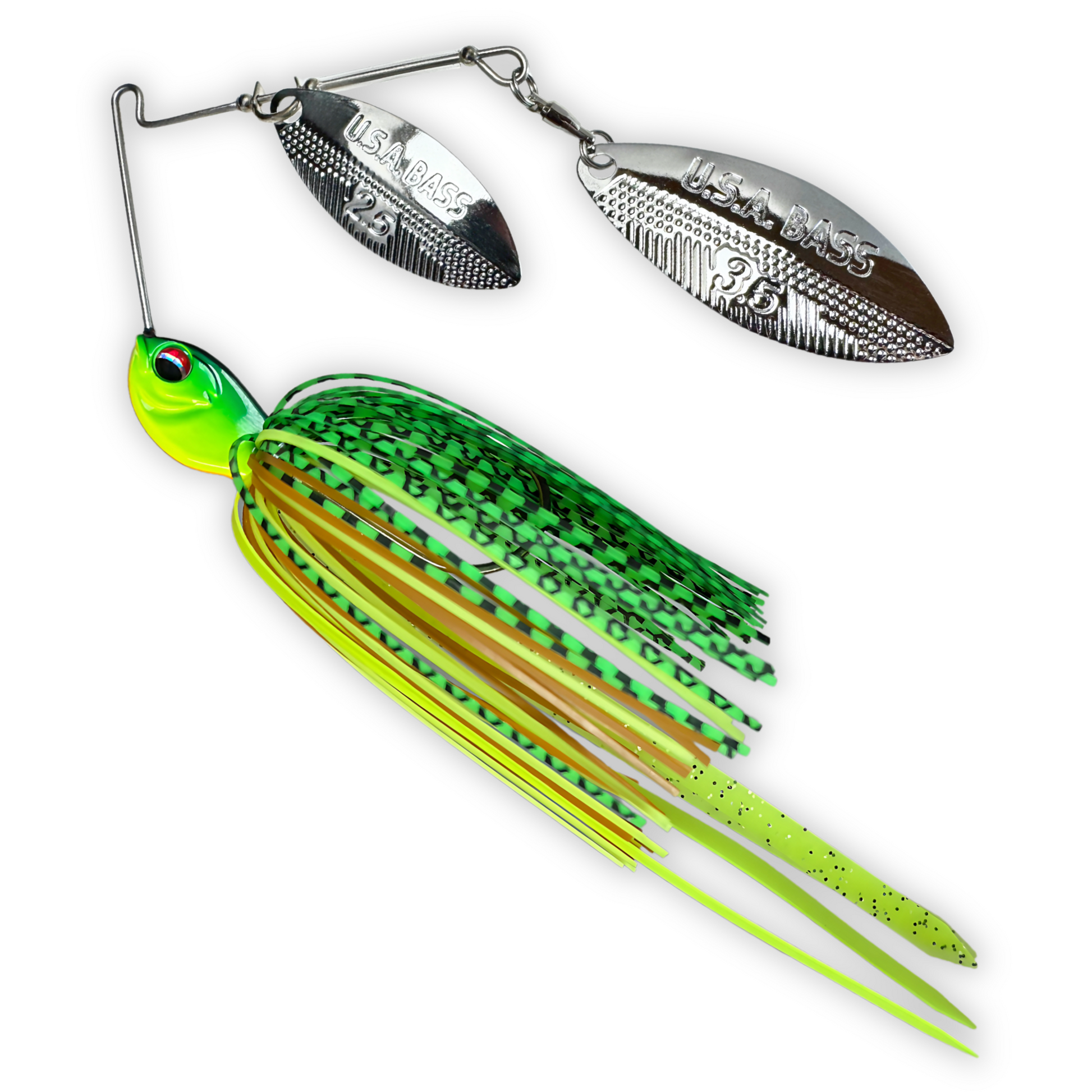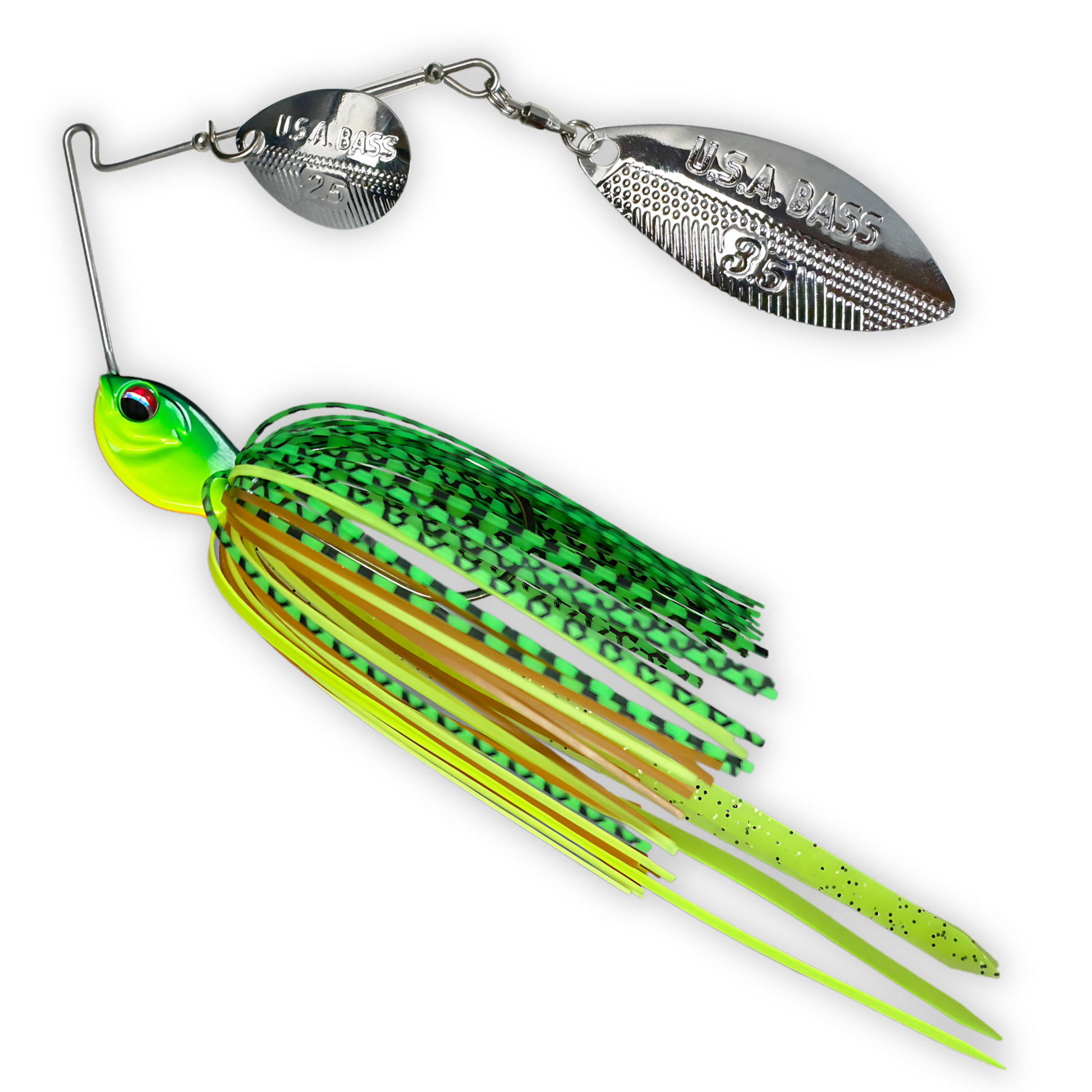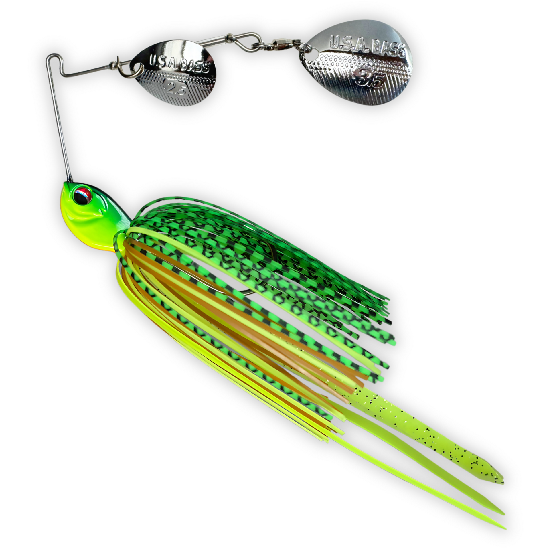 The USA Bass Tackle Apache spinnerbait is a high-performance lure designed to outfish any other on the market. With its innovative drop head design and precisely balanced body, this spinnerbait runs true no matter the cover or structure. The heavy-duty hook and custom blades deliver enticing flash and vibration to draw strikes, while intricate color options allow anglers to match various forage patterns. Whether barreling through rocky areas or traversing wood, the Apache excels at navigating tough cover. Anglers can rely on its proven fish-catching power for consistent action even in tough fishing conditions. With quality construction and cutting-edge features that produce for anglers day after day, the Apache sets the standard for hard-working spinnerbaits.