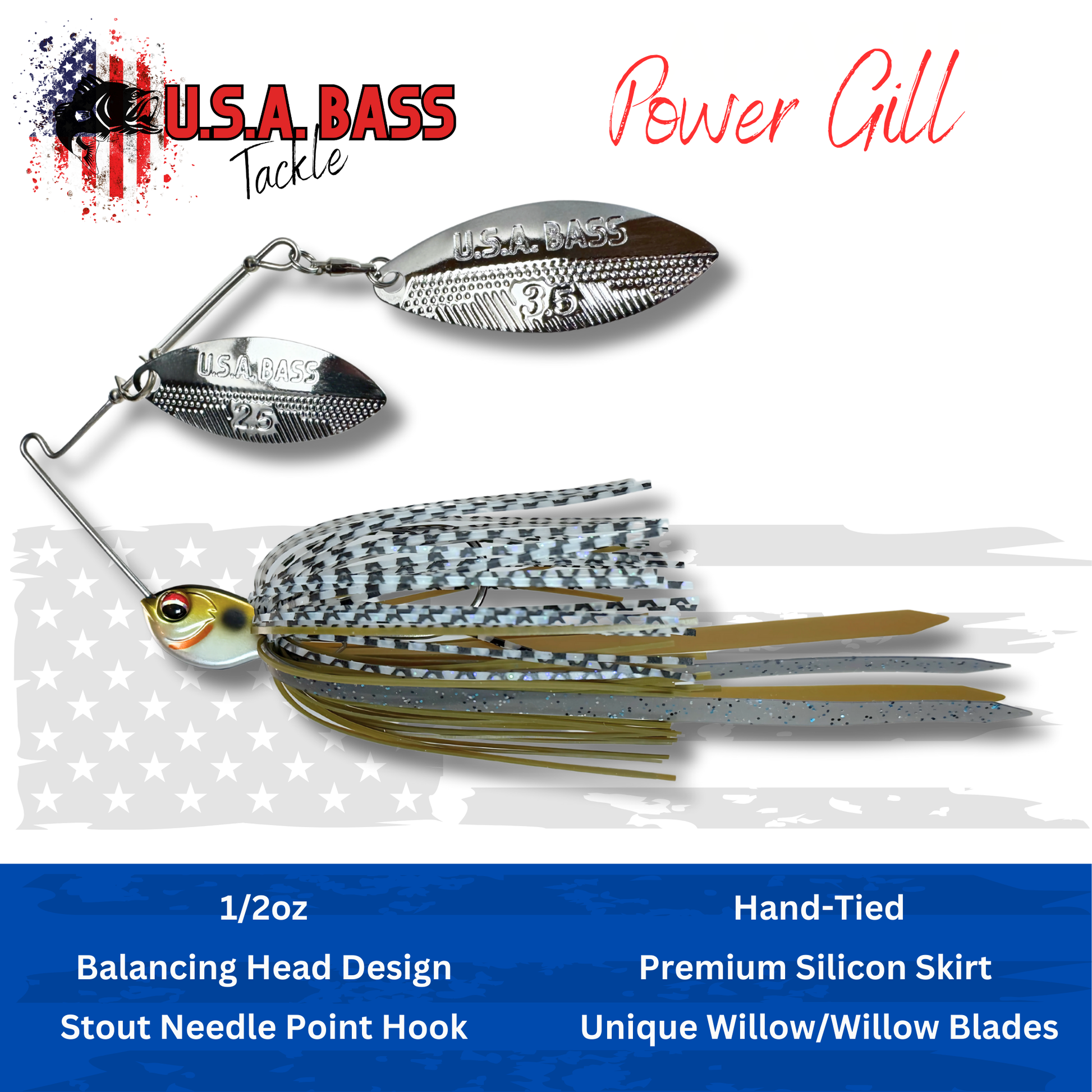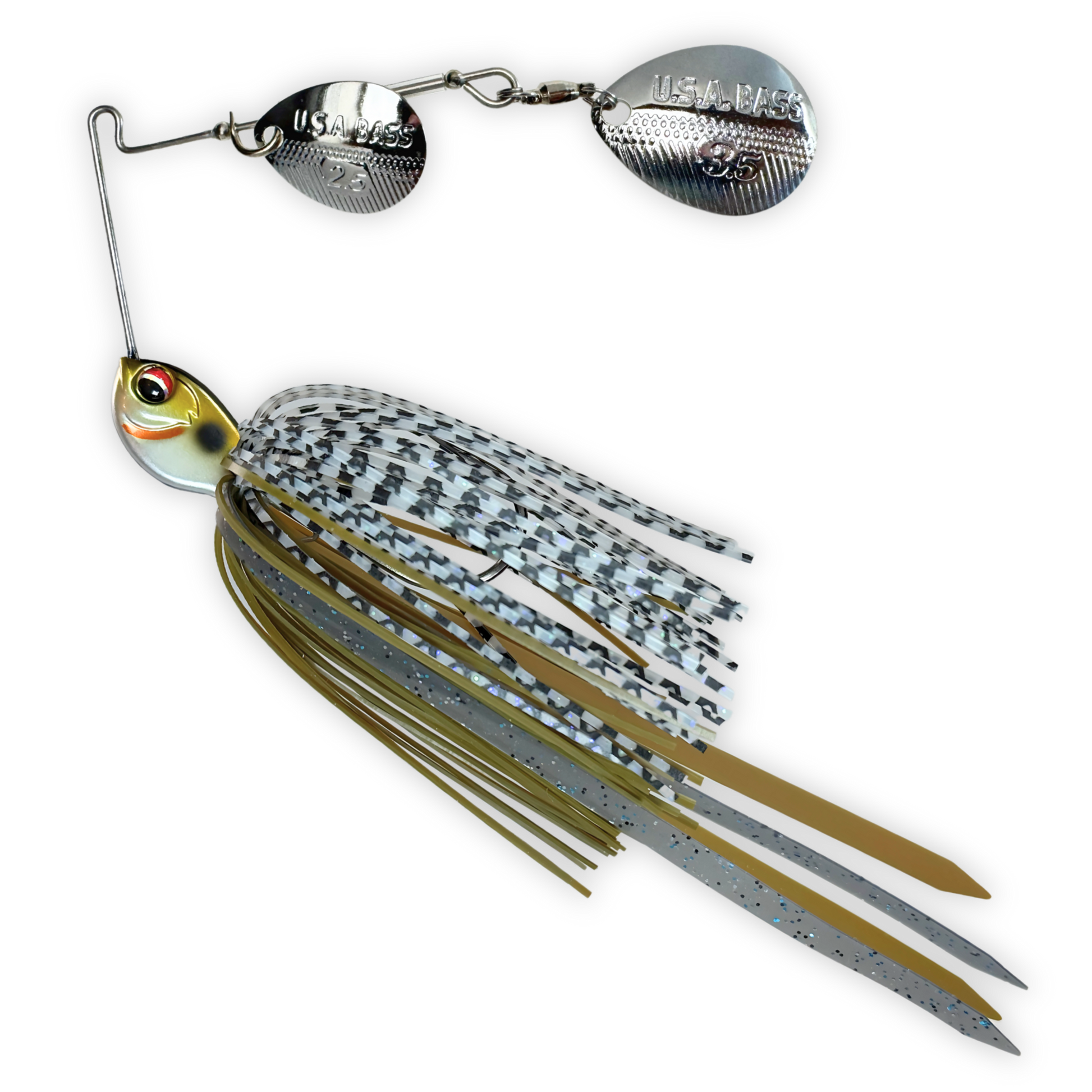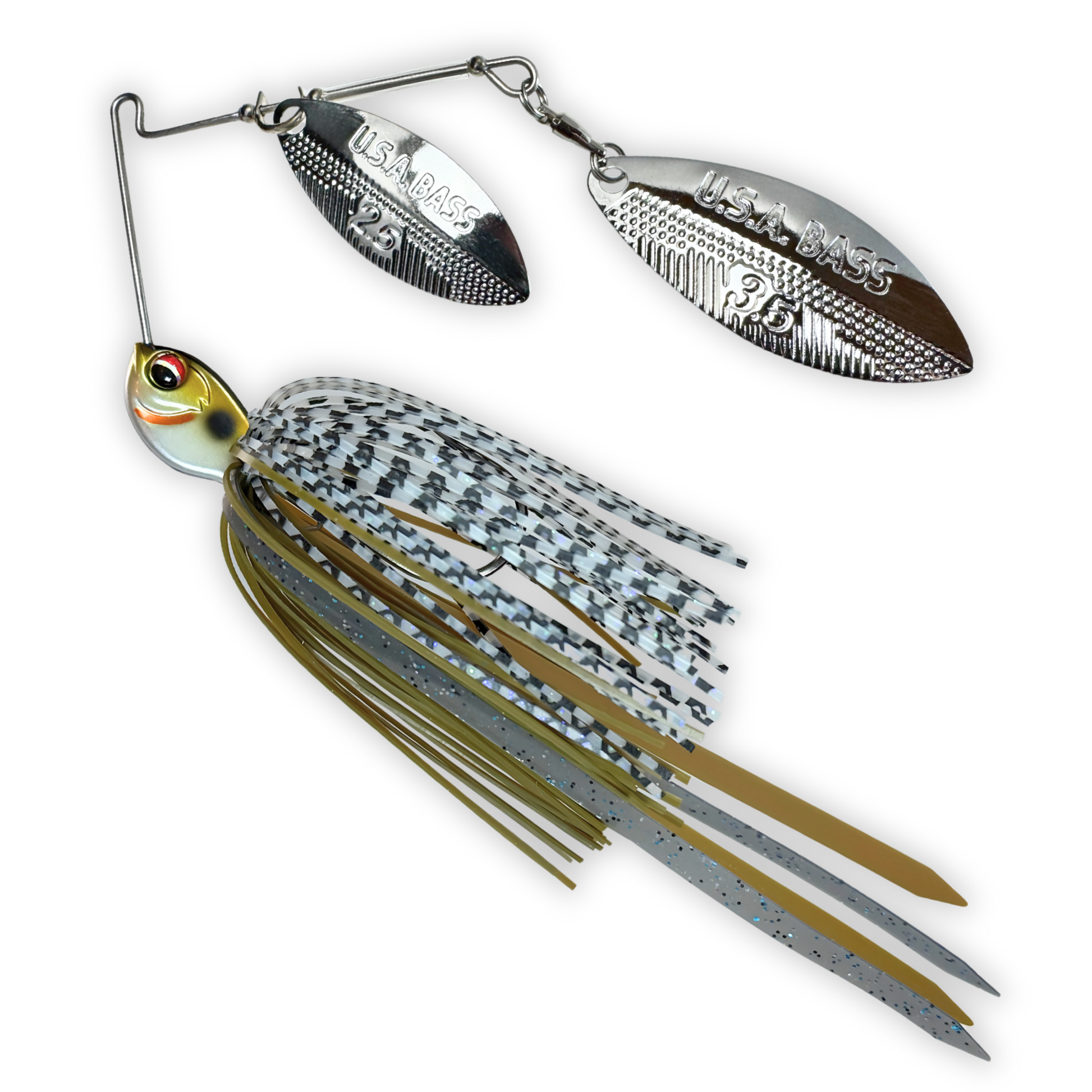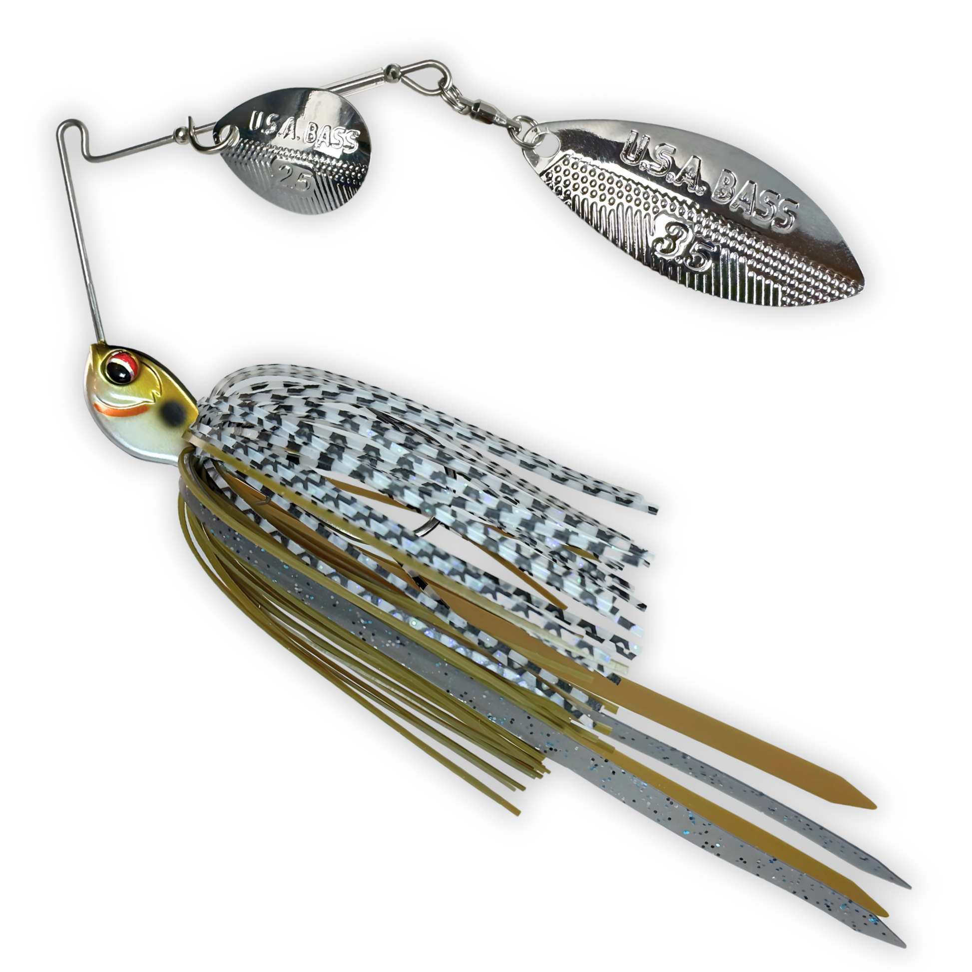 The USA Bass Tackle Apache spinnerbait is a high-performance lure designed to outfish any other on the market. With its innovative drop head design and precisely balanced body, this spinnerbait runs true no matter the cover or structure. The heavy-duty hook and custom blades deliver enticing flash and vibration to draw strikes, while intricate color options allow anglers to match various forage patterns. Whether barreling through rocky areas or traversing wood, the Apache excels at navigating tough cover. Anglers can rely on its proven fish-catching power for consistent action even in tough fishing conditions. With quality construction and cutting-edge features that produce for anglers day after day, the Apache sets the standard for hard-working spinnerbaits.