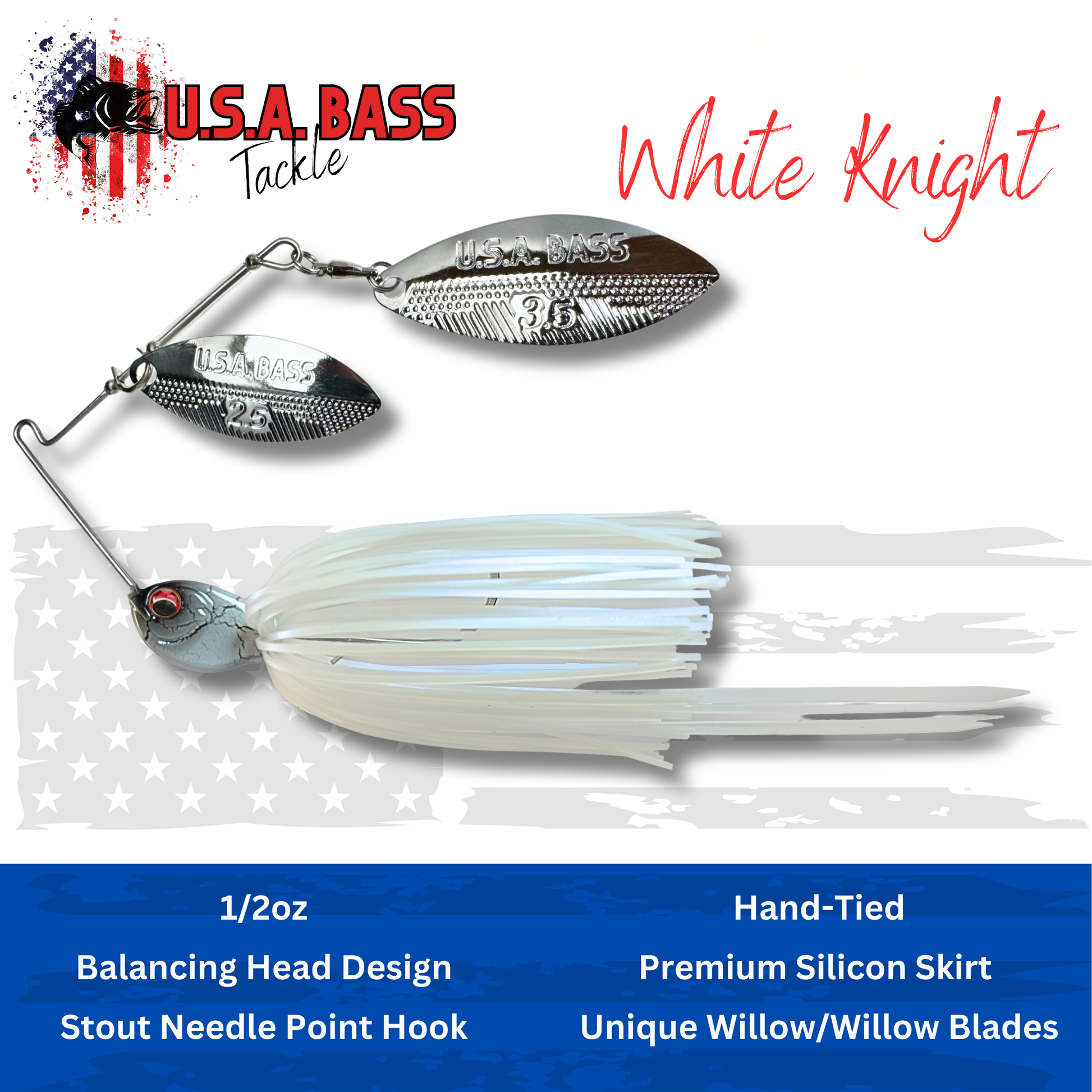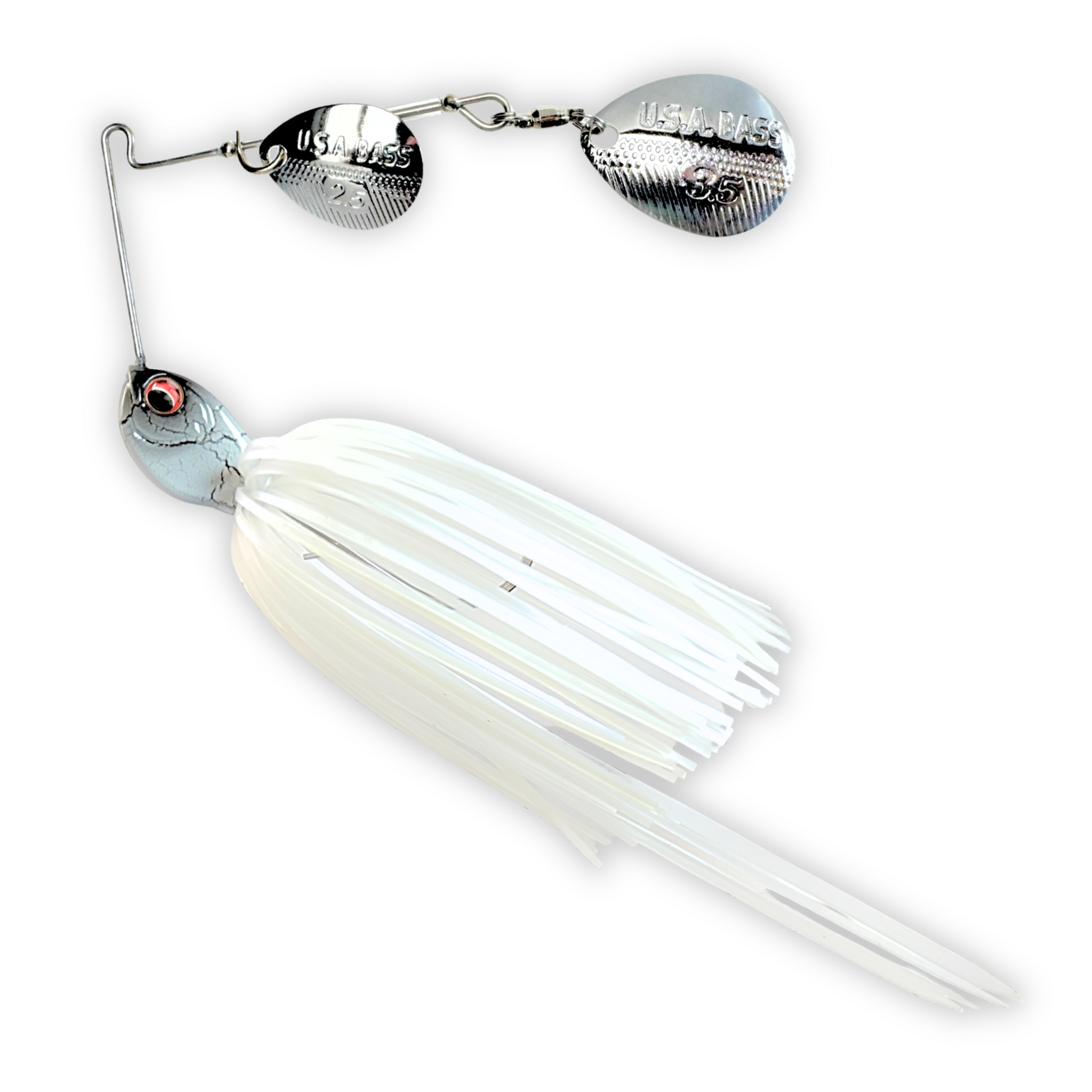 The USA Bass Tackle Apache spinnerbait is a high-performance lure designed to outfish any other on the market. With its innovative drop head design and precisely balanced body, this spinnerbait runs true no matter the cover or structure. The heavy-duty hook and custom blades deliver enticing flash and vibration to draw strikes, while intricate color options allow anglers to match various forage patterns. Whether barreling through rocky areas or traversing wood, the Apache excels at navigating tough cover. Anglers can rely on its proven fish-catching power for consistent action even in tough fishing conditions. With quality construction and cutting-edge features that produce for anglers day after day, the Apache sets the standard for hard-working spinnerbaits.